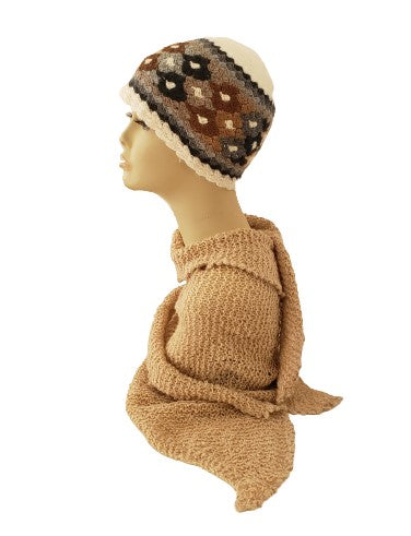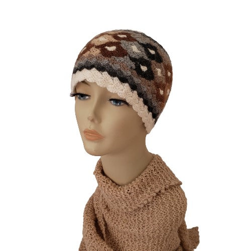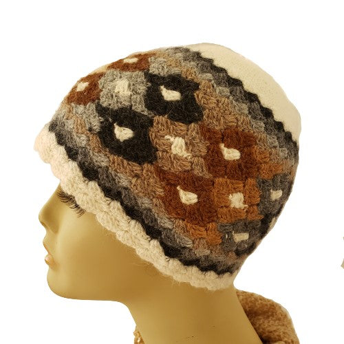 Alpaca Hand Knitted Hats- Natural Rhombo
