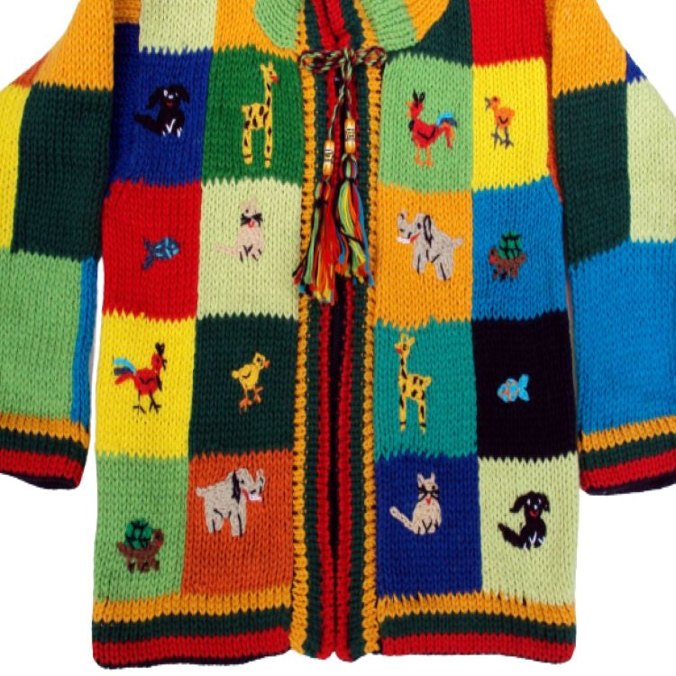 This adorable, soft and cozy cotton hooded sweater in a traditional Inca geometric design is for your child to enjoy while staying warm. The authentic "CHESS" Inca design makes this unique and interactive, because the child will learn what animal is position on the top and in the bottom to match the game. They will want to wear it everyday!
