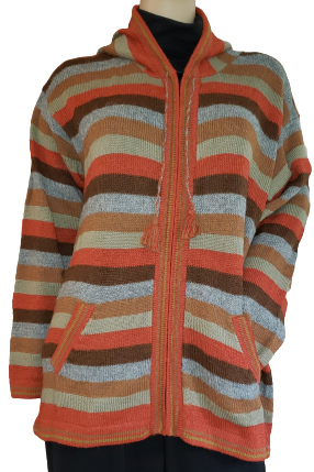 Relaxed, warm and easy to wear sweater/jacket with full zipper design. It will be one of your favorites on the go jacket. You will love having this stripe hooded sweater especially when it is windy and cold so you can protect your face from the harsh wind in winter days. This luxurious alpaca fiber long prized for its lightweight warmth and hypoallergenic features will keep you warm and cozy this winter coming.