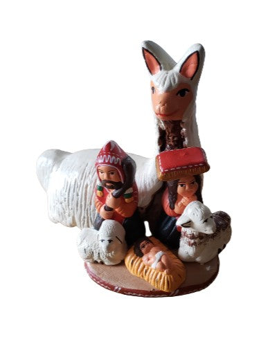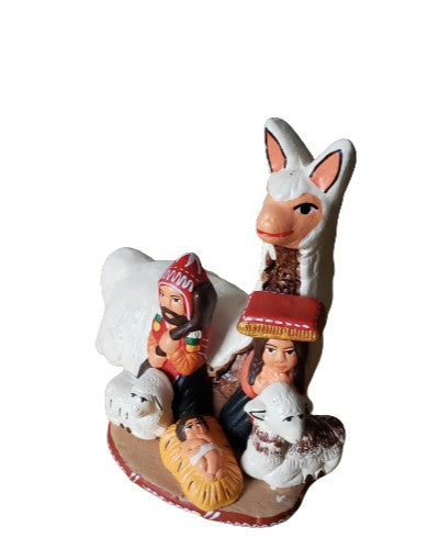 Talented crafters represented in the traditional Peruvian setting Mary and Joseph to worship the newborn Christ child. Crafted in ceramic and finely painted by hand, it celebrates Christmas in the Peruvian Way.