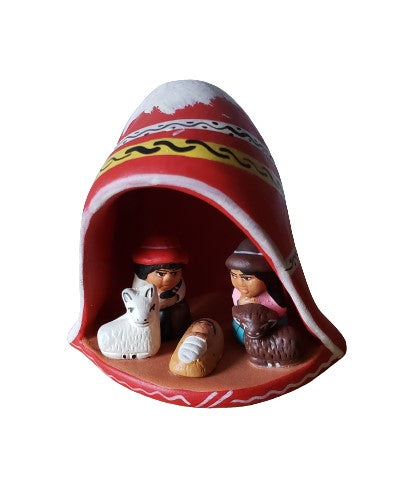Talented crafters represented in the traditional Peruvian setting Mary and Joseph to worship the newborn Christ child. Crafted in terracotta and finely painted by hand, it celebrates Christmas in the Peruvian Way.