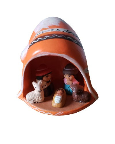 Peruvian Ceramic Hand Made Chullo Nativity-Orange