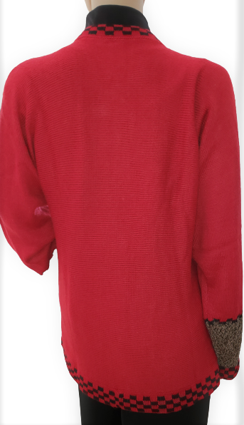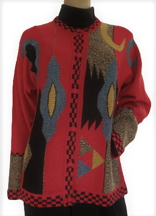 Classic, Elegant and easy to wear a button-front sweater with Andean geometric patterns on the front, representing the vibrant patterns of the NAZCA Lines showing the amazing geoglyphs, shallow incisions in the desert that was done removing pebbles and soil with their hands using handmade tools. Historical ruins that exists and made around 500 BC